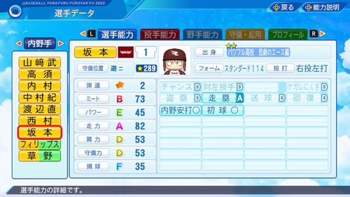 【パワプロ2022作成】坂本ゲン【サクセスキャラ】