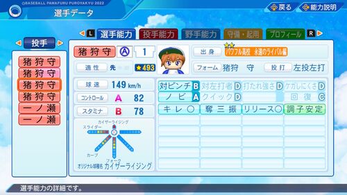 猪狩守(あかつき大附属高校、読売ジャイアンツ、猪狩カイザース、など)