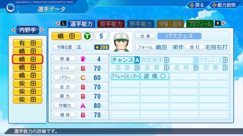 【パワプロ2022作成】嶋田栄作【サクセスキャラ】