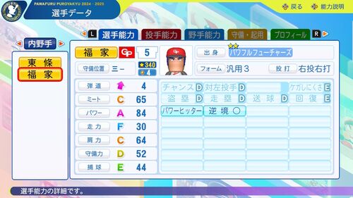 【パワプロ2024-2025】福家花男【サクセスキャラ作成】