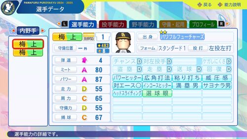 【パワプロ2024-2025】梅上国夫【サクセスキャラ作成】