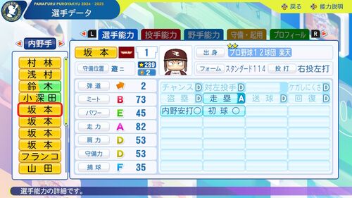 【パワプロ2024-2025】坂本ゲン【サクセスキャラ作成】