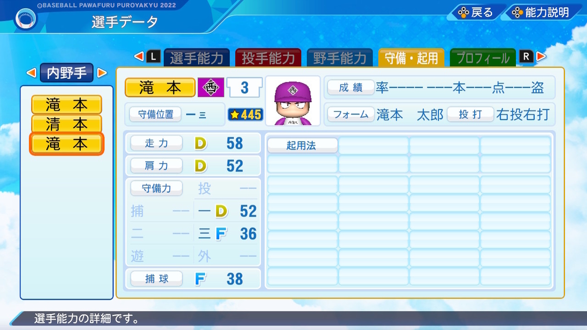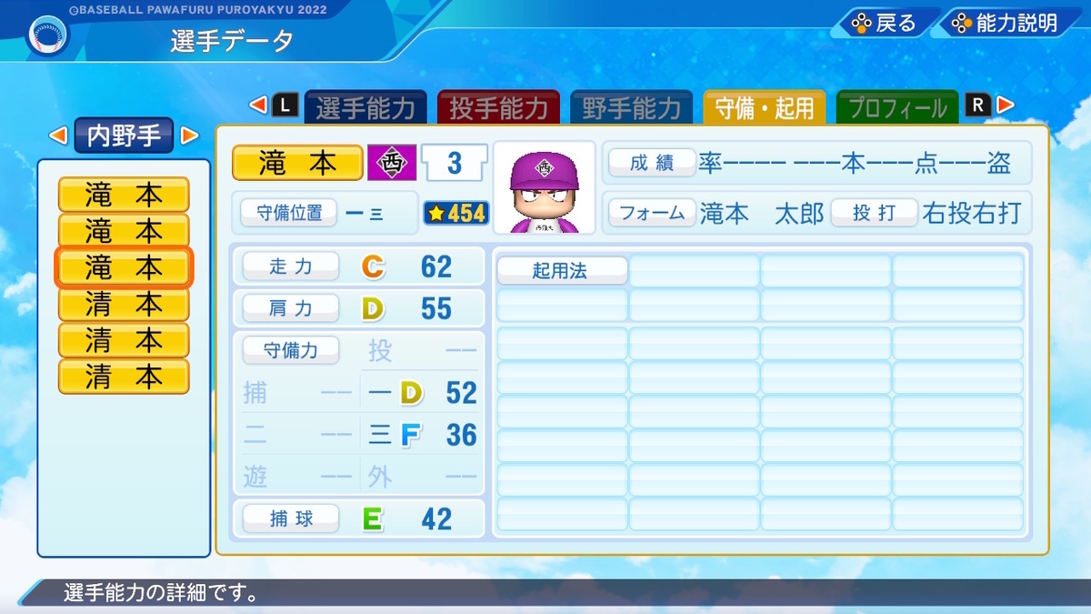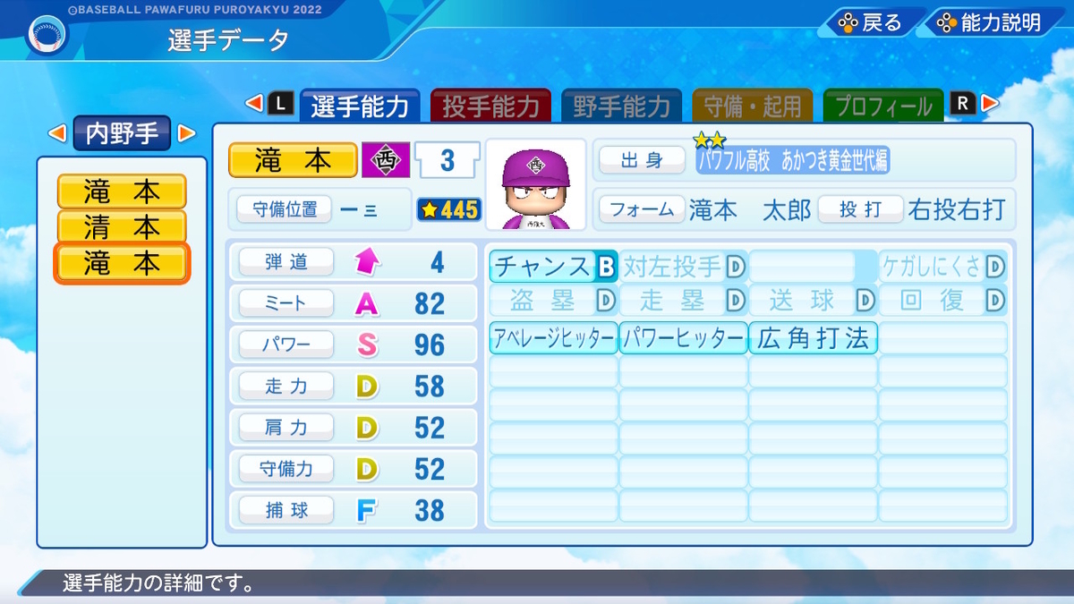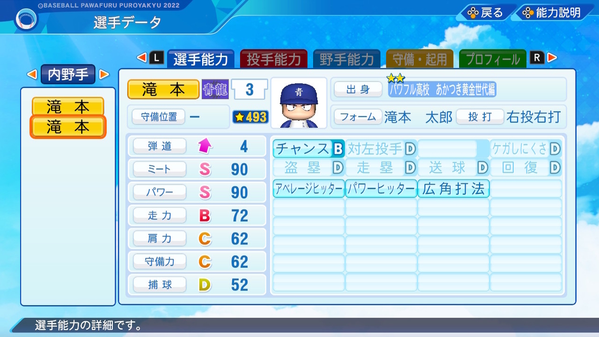 【パワプロ2022作成】滝本太郎【サクセスキャラ】