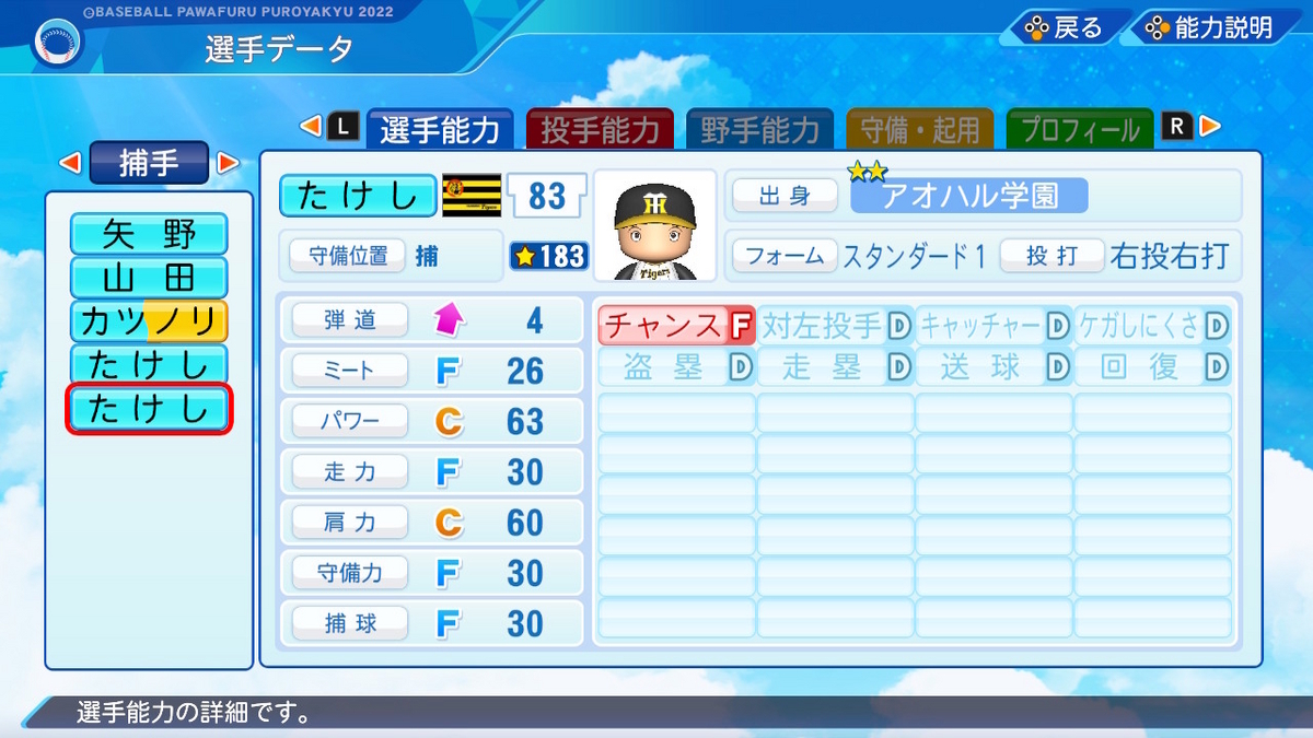 【パワプロ2022作成】鳴尾たけし【サクセスキャラ】