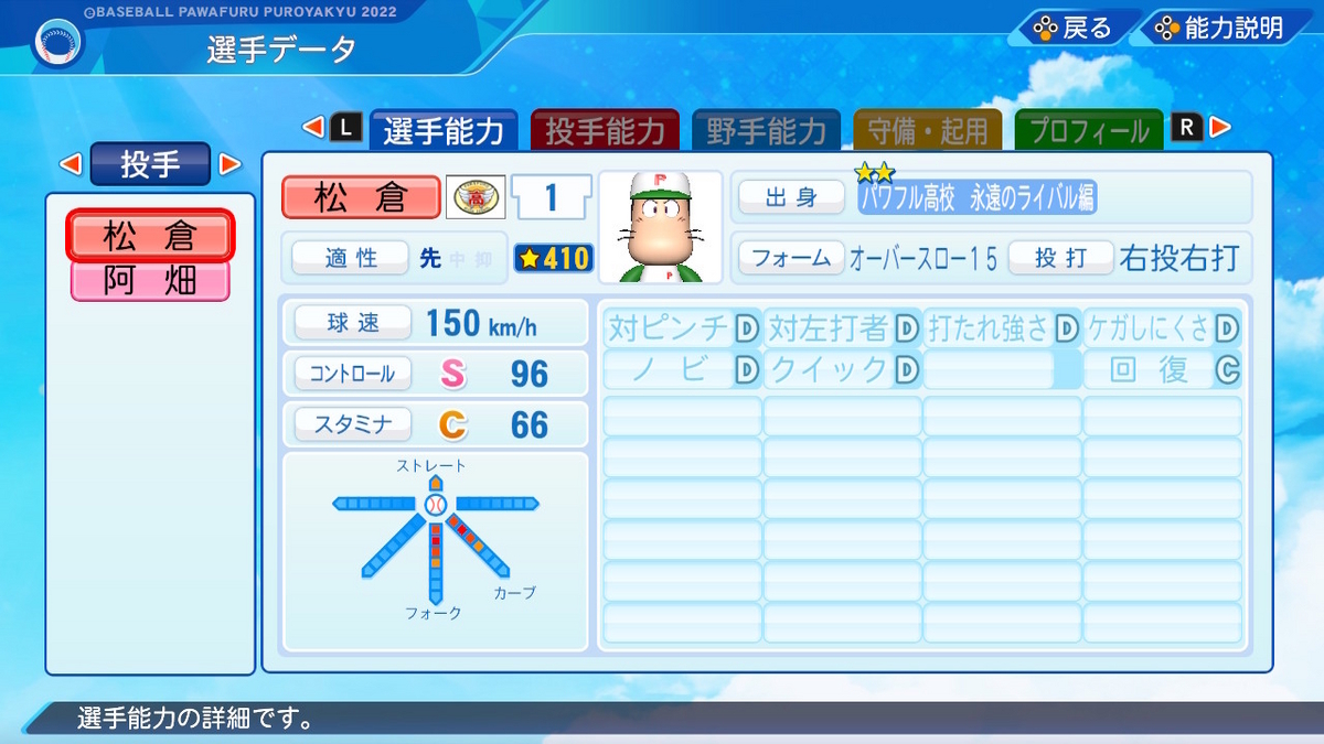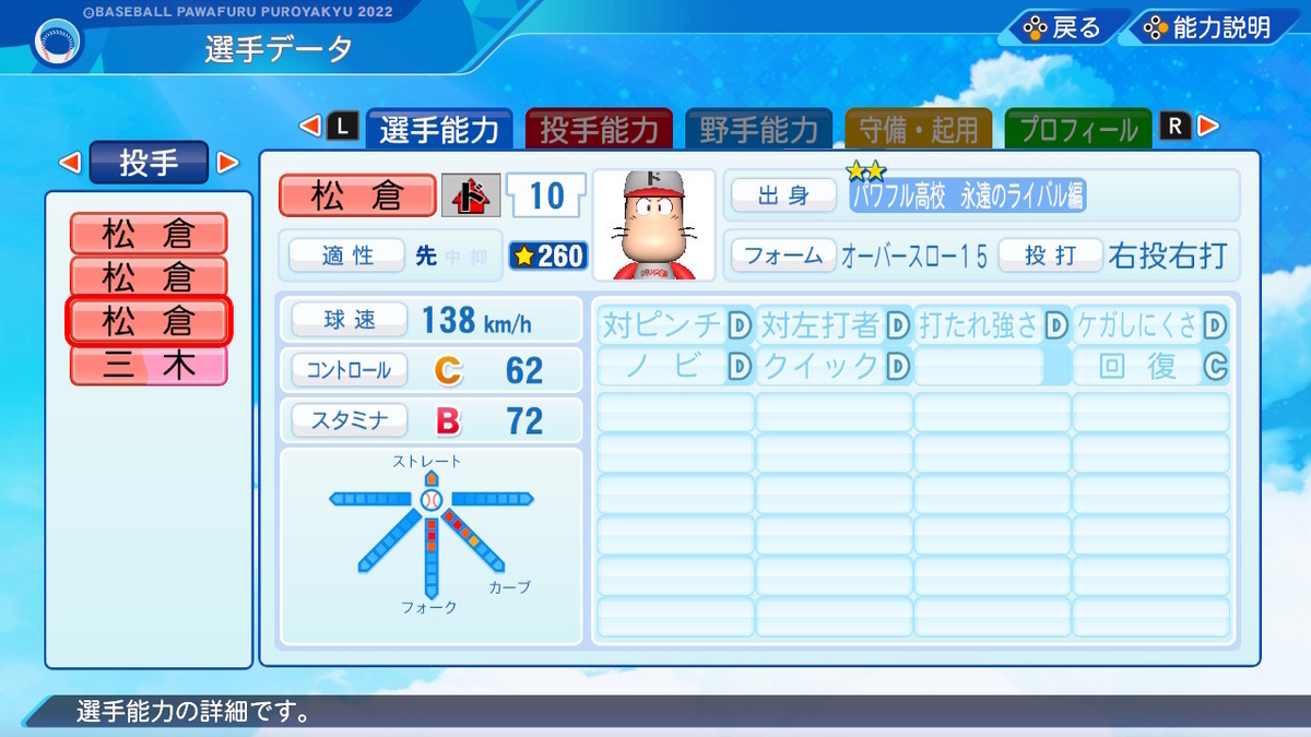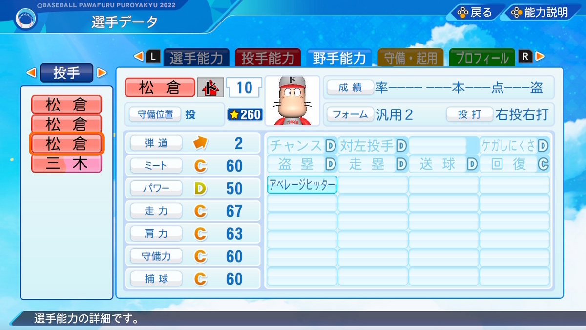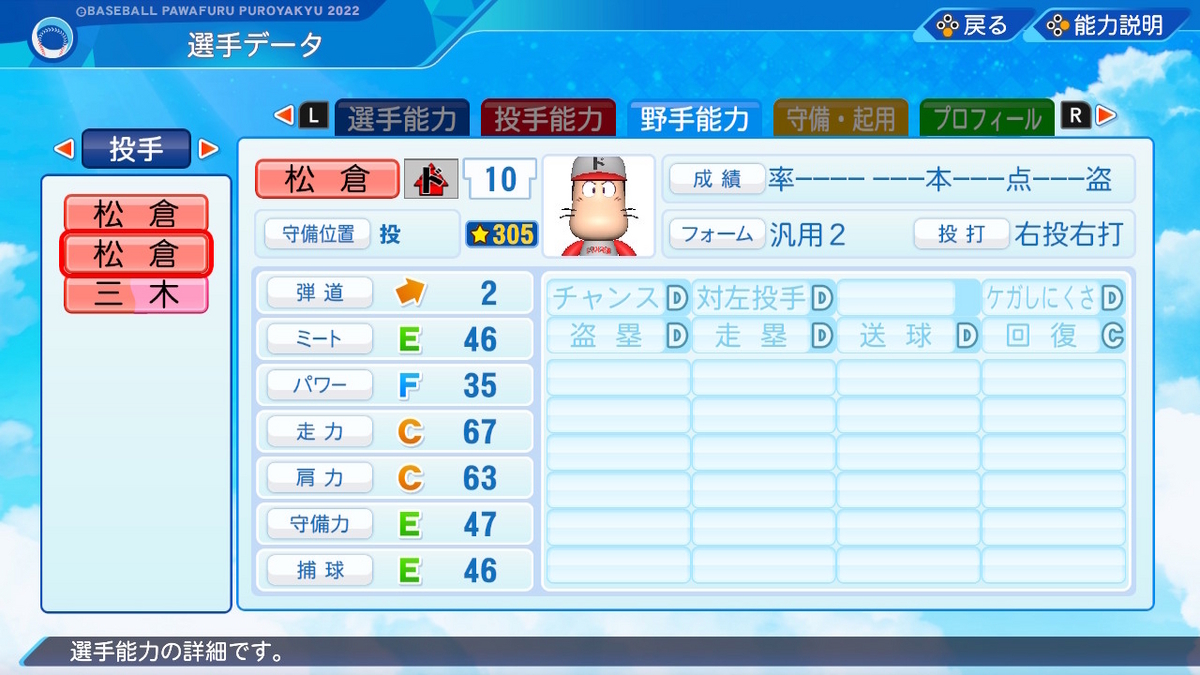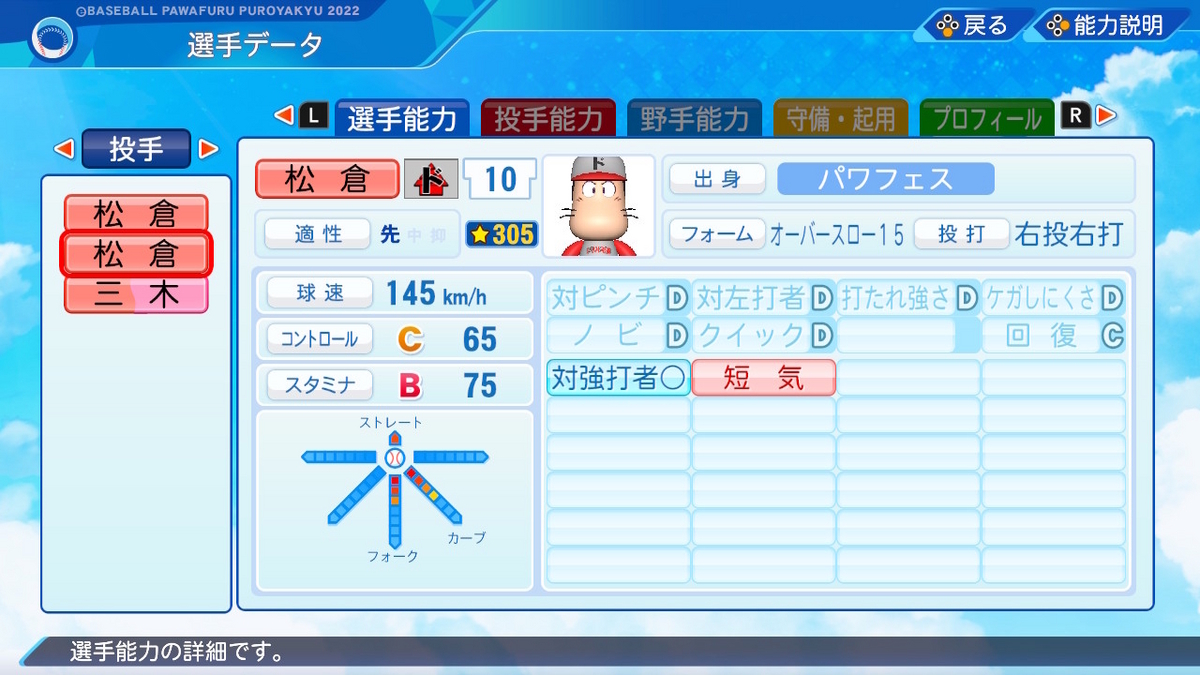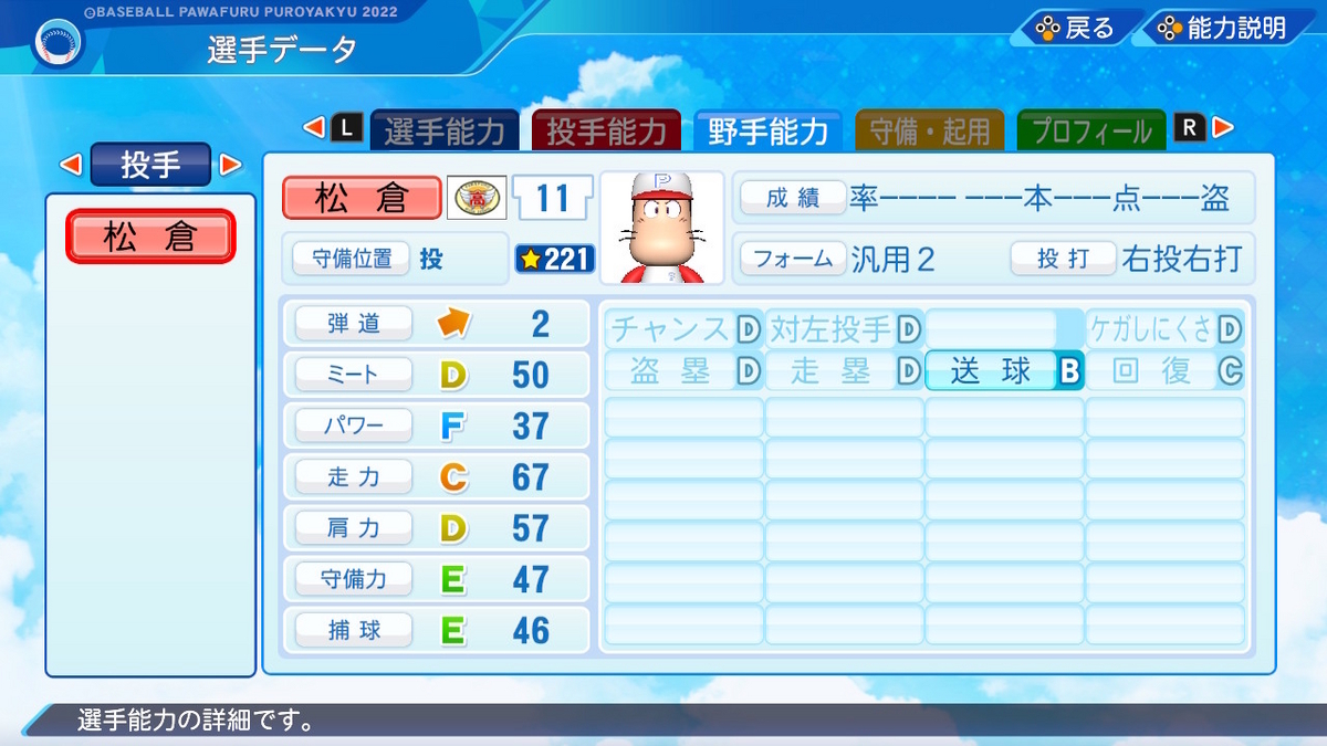 【パワプロ2022作成】松倉宗光【サクセスキャラ】