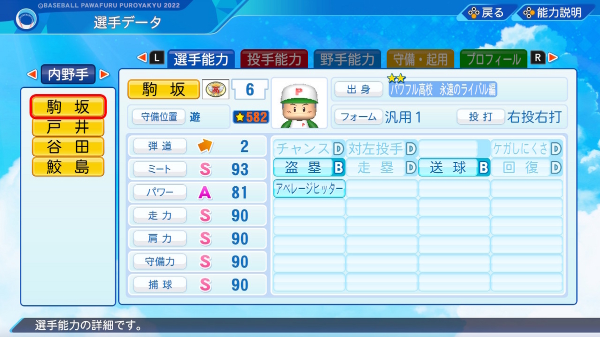 【パワプロ2022作成】駒坂瞬【サクセスキャラ】