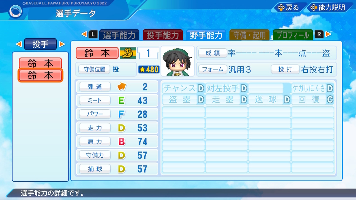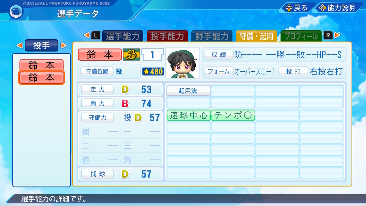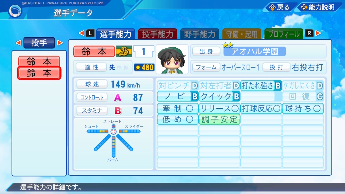 【パワプロ2022作成】鈴本大輔【サクセスキャラ】