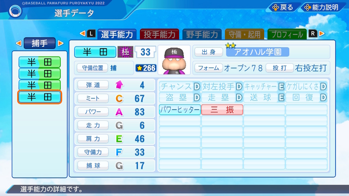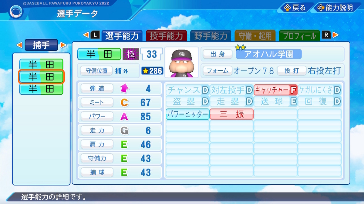 【パワプロ2022作成】半田小鉄【サクセスキャラ】