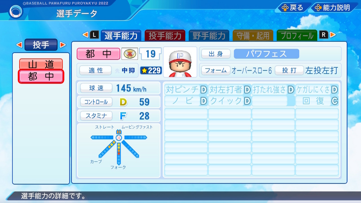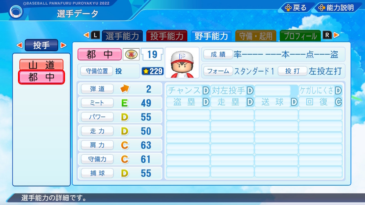 【パワプロ2022作成】都中新太郎【サクセスキャラ】