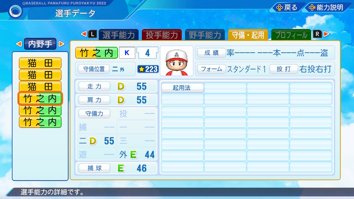【パワプロ2022作成】竹之内卓【サクセスキャラ】