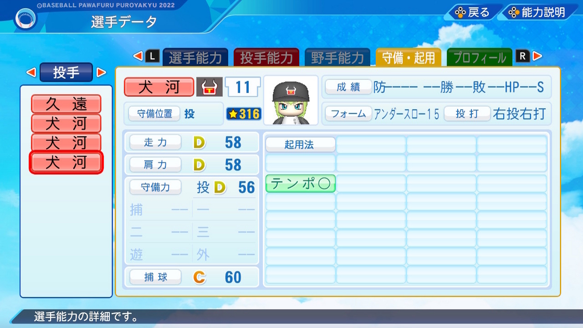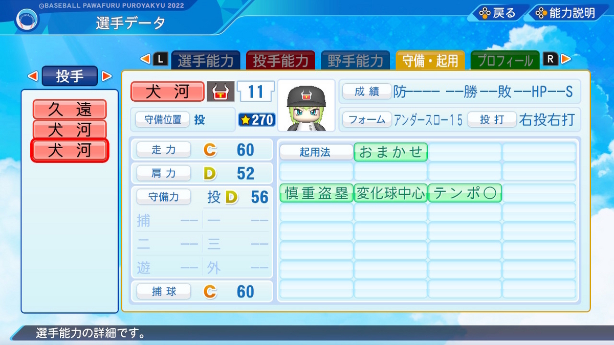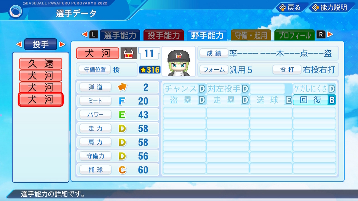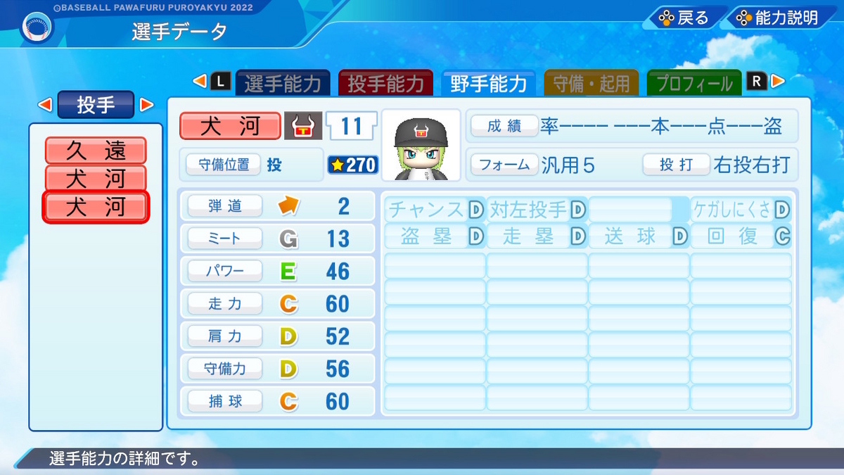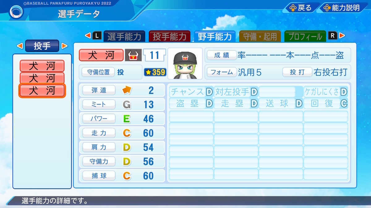 【パワプロ2022作成】犬河和音【サクセスキャラ】