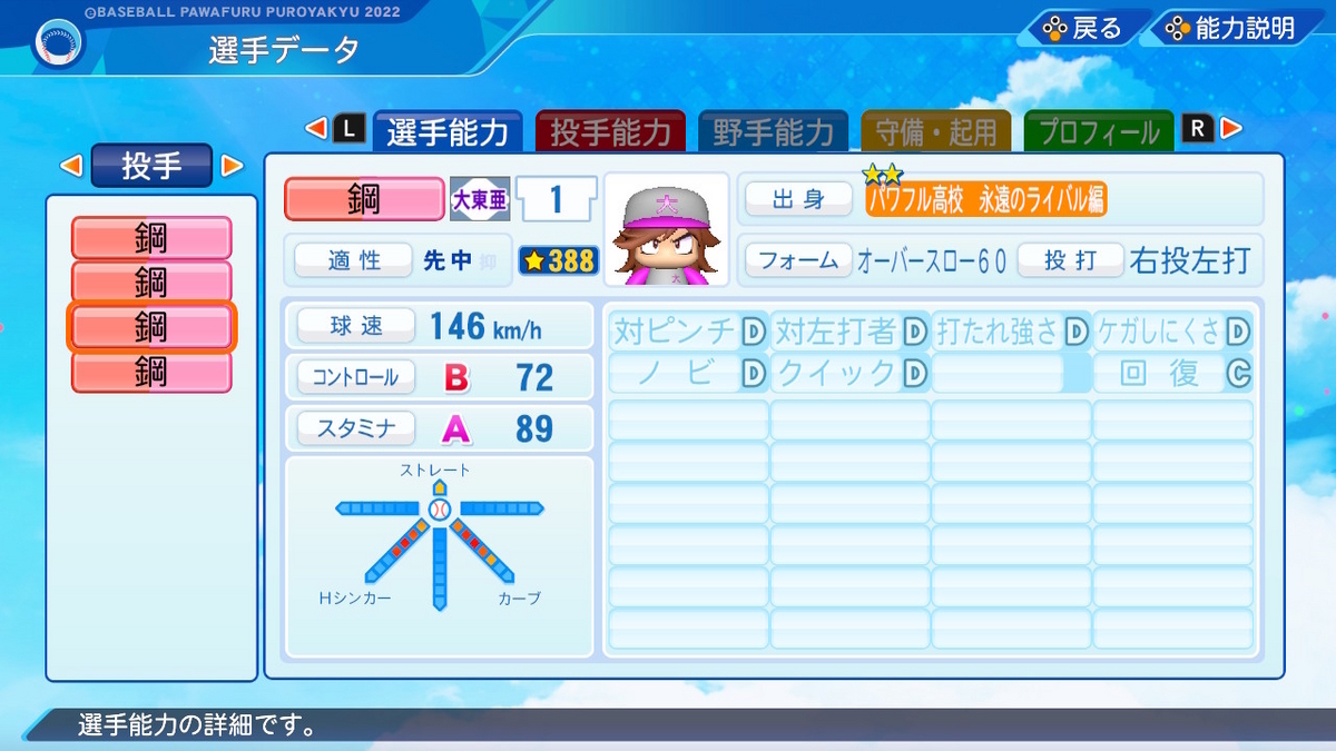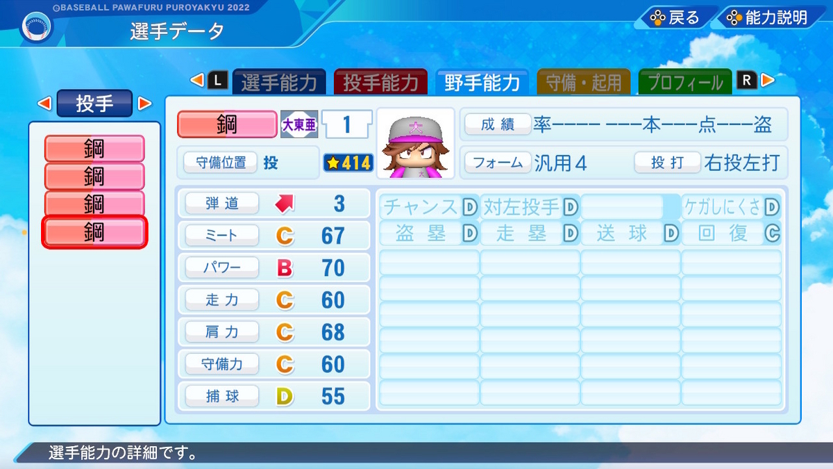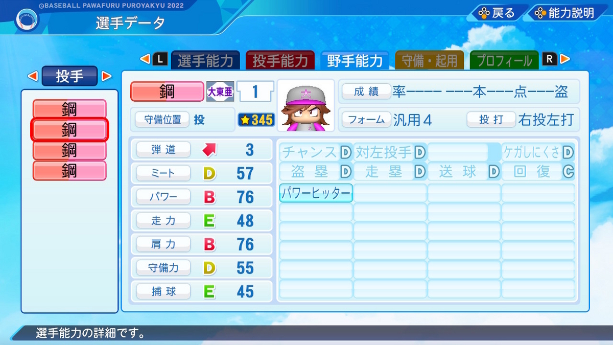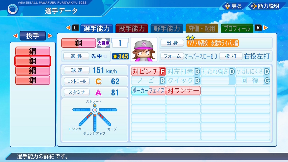 【パワプロ2022作成】鋼毅【サクセスキャラ】