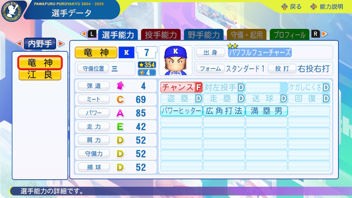 【パワプロ2024-2025】竜神小五郎【サクセスキャラ作成】