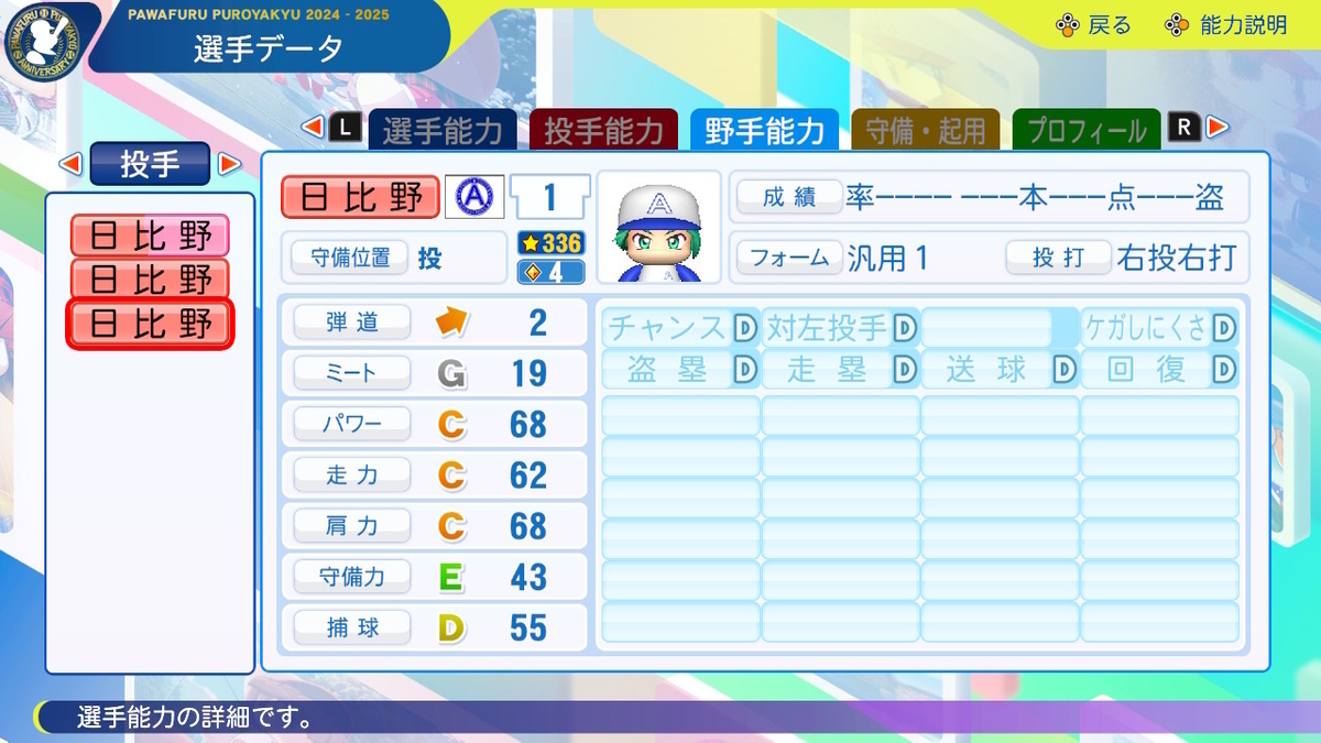 【パワプロ2024-2025】日比野慎一郎【サクセスキャラ作成】