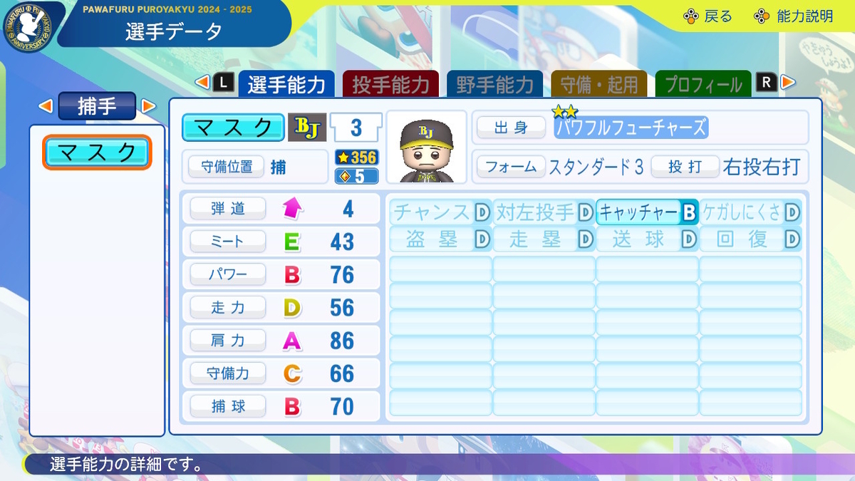 【パワプロ2024-2025】マスク【サクセスキャラ作成】