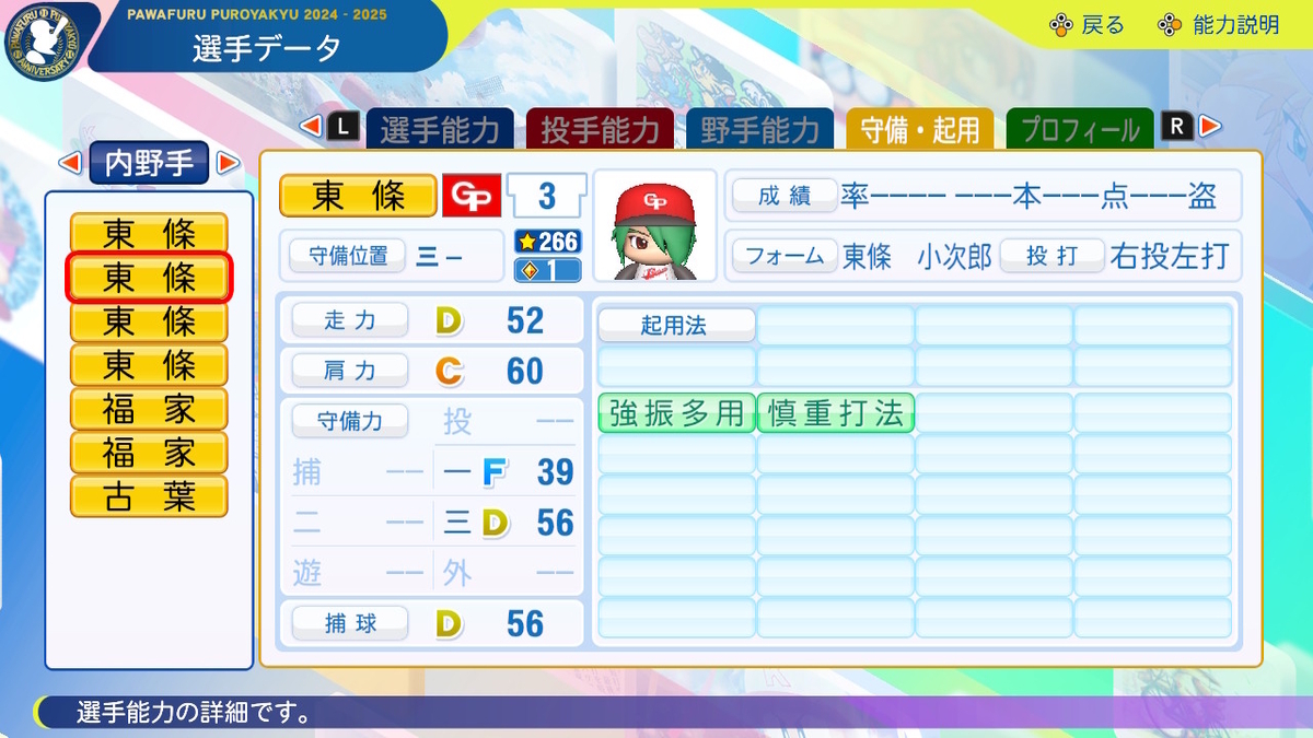 【パワプロ2024-2025】東條小次郎【サクセスキャラ作成】
