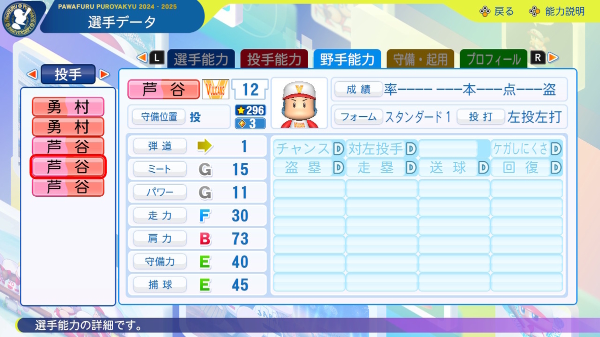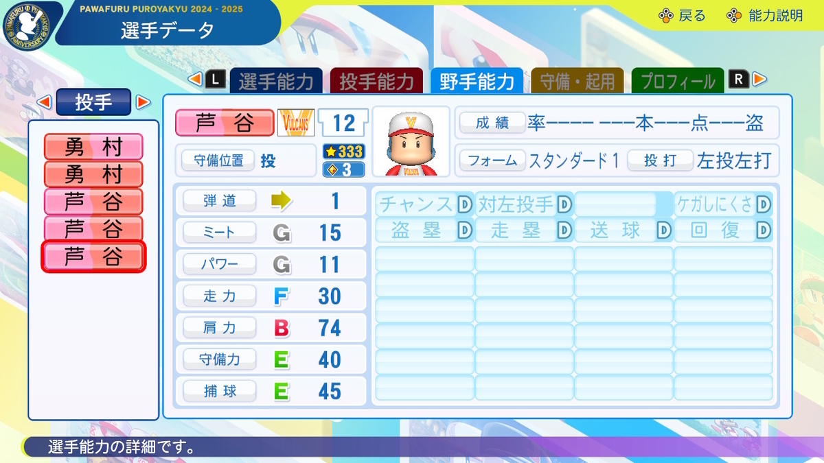 【パワプロ2024-2025】芦谷翔【サクセスキャラ作成】