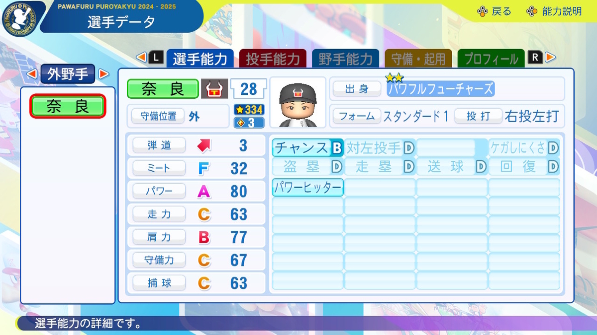 【パワプロ2024-2025】奈良【サクセスキャラ作成】