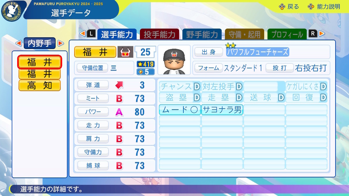 【パワプロ2024-2025】福井【サクセスキャラ作成】